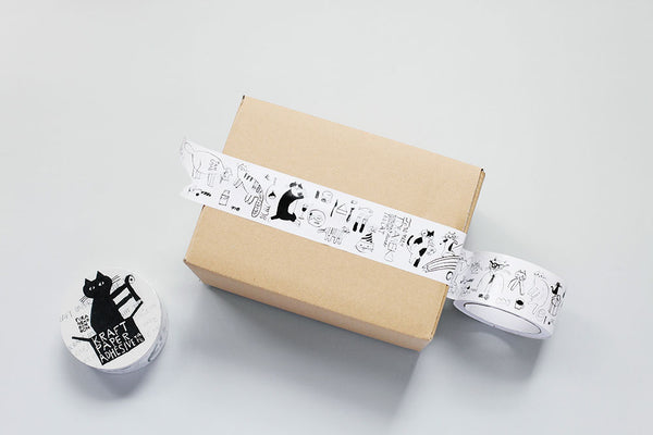 Cinta adhesiva de 50 mm de ancho (papel) con diseños ilustrados negros de Norau, Tarou, Momoko, Amoson, Tam Chan y Popie y sus accesorios. Solo algunos de los animales domesticados más autosuficientes. Para el papel que ama el gato se trata de la vida.