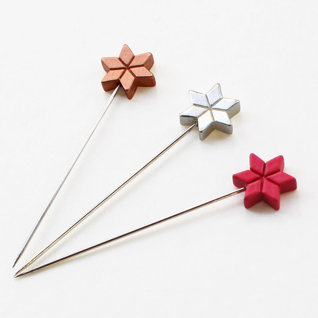 The sewing pins are made inspired by the beautiful twinkling stars in the night sky. The set is available in three colors: copper, silver and KANTSUBAKI red.