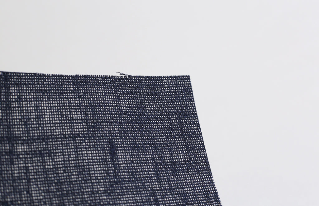 La tela de Kogin es un tejido abierto espeso hecho para tomar las agujas punzando y saliendo de los agujeros. Similar a una puntada cruzada La formación de rejillas de los orificios en la tela dicta la costura. El geométricoLos patrones se crean costando verticalmente, siguiendo un patrón para cubrir los números irregulares de agujeros, uno, tres, cinco y, a veces, siete, para mostrar el hilo.