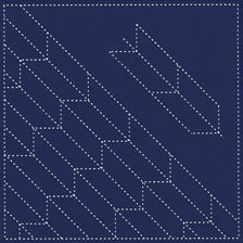 El sashiko tradicional usa hilo blanco en la marina, pero el emparejamiento con hilo rosa, rojo o verde puede agregar una dimensión fresca al diseño simétrico.