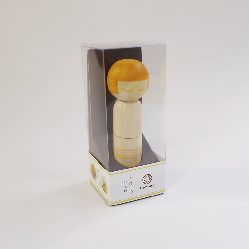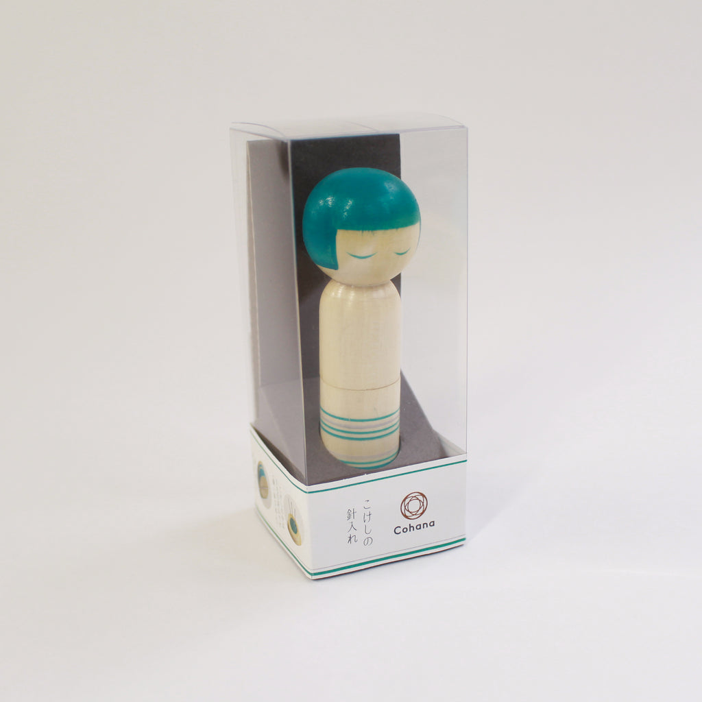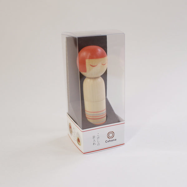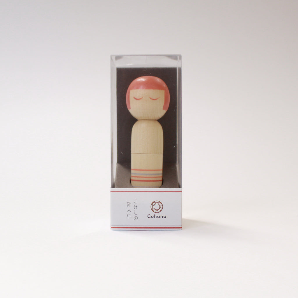 La muñeca Kokeshi de Cohana, es del estilo de la muñeca Tsugaru Kokeshi. Con su inocente, cara simple y cabello, contiene tres agujas de Meboso Hachirobei Shoten (hogar de fabricantes de agujas de calidad en Japón). Hay un imán en la parte inferior de la muñeca para que las agujas puedan ser recogidas.