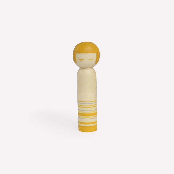 Las muñecas Kokeshi son muñecas de madera simples que están hechas de una pieza cilíndrica con una cara pintada y sin brazos o piernas distintas.