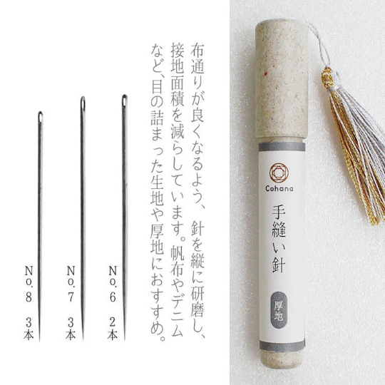 La tradición de 430 años de la fabricación de agujas de MEBOSO ha sido respetada durante mucho tiempo por la industria de costura de Kanazawa por sus agujas de acero de calidad superior. La característica única de sus agujas es la capacidad de perforar con poco contacto con la tela, hecha posible debido a su superficie pulida verticalmente.