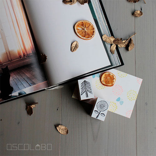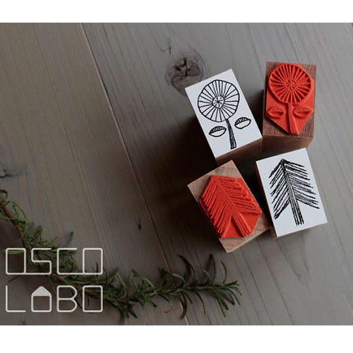 Sellos de goma de Osco Lobo: Flor con ruedas, árbol de aguja