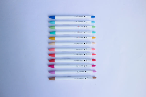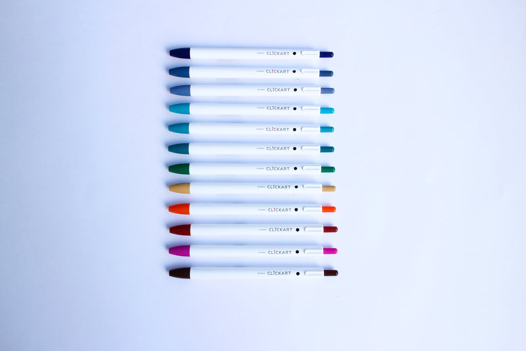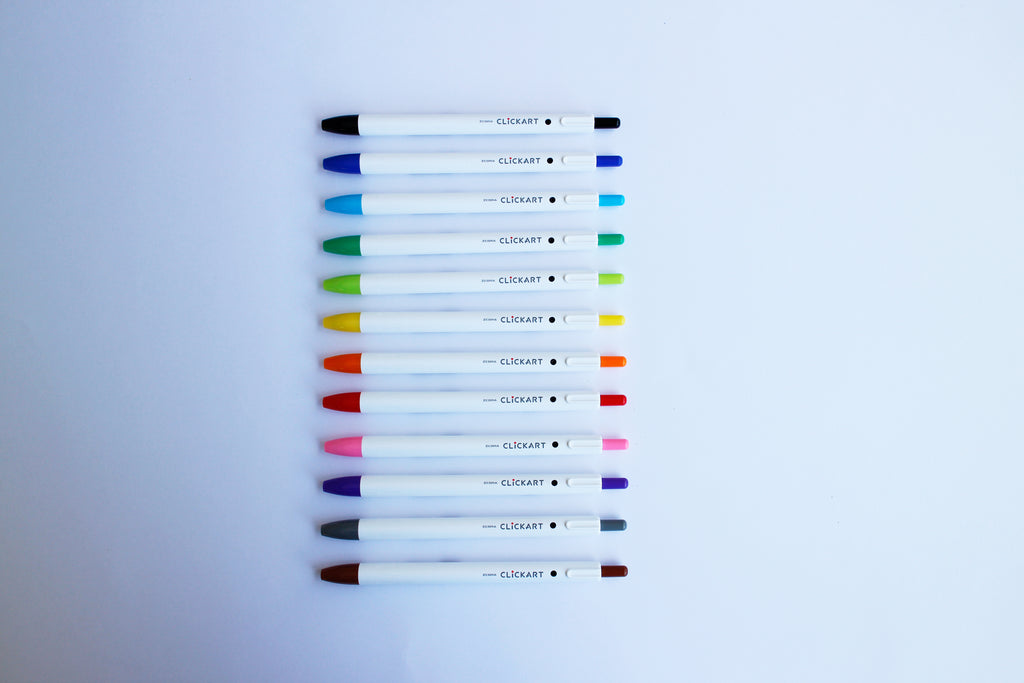 Los plumas de ClickArt Zebra son pluma de marcador con una tapa de clic en lugar de una tapa. La tinta toma la humedad del aire, lo que le impide secarse fácilmente. El Cebra Clickart tiene una línea fina .6mm y viene en 36 hermosos Columbrs! Este es el conjunto completo de 36 colores. Es ideal para escribir texto en revistas de bala, planificadores, diarios, libros de trabajo de trabajo y cualquier otro que hacer listas.