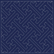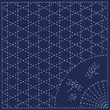 Sashiko traditionnel utilise un fil blanc sur la marine, mais le jumelage avec un thread rose, rouge ou vert peut ajouter une nouvelle dimension à la conception symétrique.