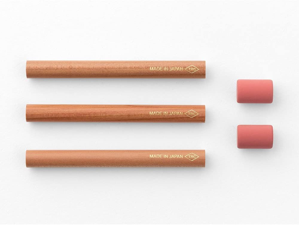 La recharge de crayon est la recharge dédiée pour le crayon en laiton et en bois de compagnie de voyageurs. Il y a trois crayons, deux gomme et un ensemble d'effondre.