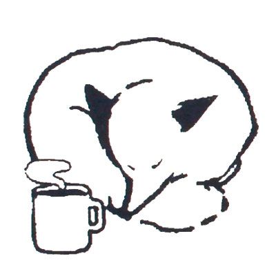 - Cette conception montre le renard endormi à côté de la tasse à café