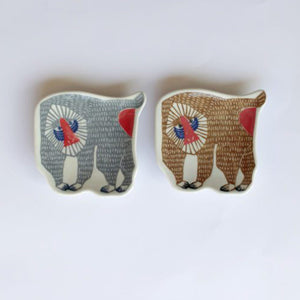風変わりで楽しい美学を持つ家庭用品のクラシキー(または倉敷デザイン企画会社)メーカーは、カタカタと協力して、動物のキャラクターとコケシ人形のセラミックスの範囲を作り出しました。陶磁器は、素朴で手描きのスタイルを維持しています。