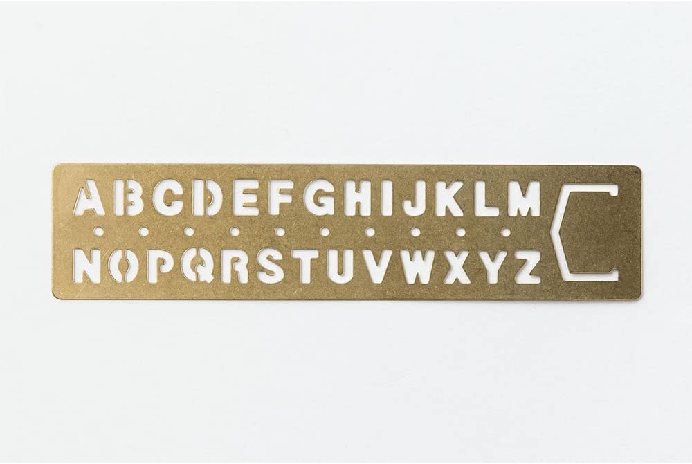 Traveler's Companyから、これはアルファベットからの文字のテンプレートとして使用できるブリキブックマークです。