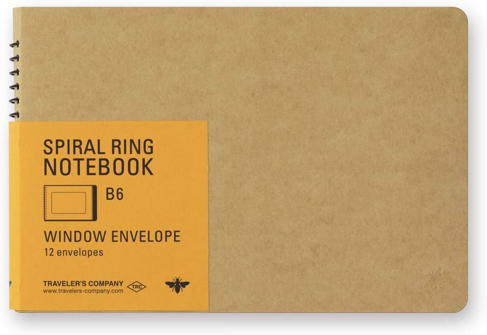 中紙/クラフト紙、窓付き12封筒、スパイラルリングブック(ブラック)