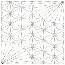 Yumefukin is a cloth for stitching sashiko. These designs make a square hand towel. Some of the designs are suited as a hand cloth for a baby's room or bathroom hand towel. The beauty of sashiko is that you can follow create a brilliant symmetrical design by sewing along the pre-printed lines on the piece. After you have finished, wash with water and the print pattern will disappear and you have an original sashiko work.