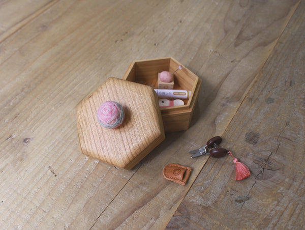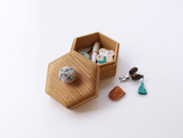 Cohana has created small hexagonal wood box with a small temari ball on the lid.