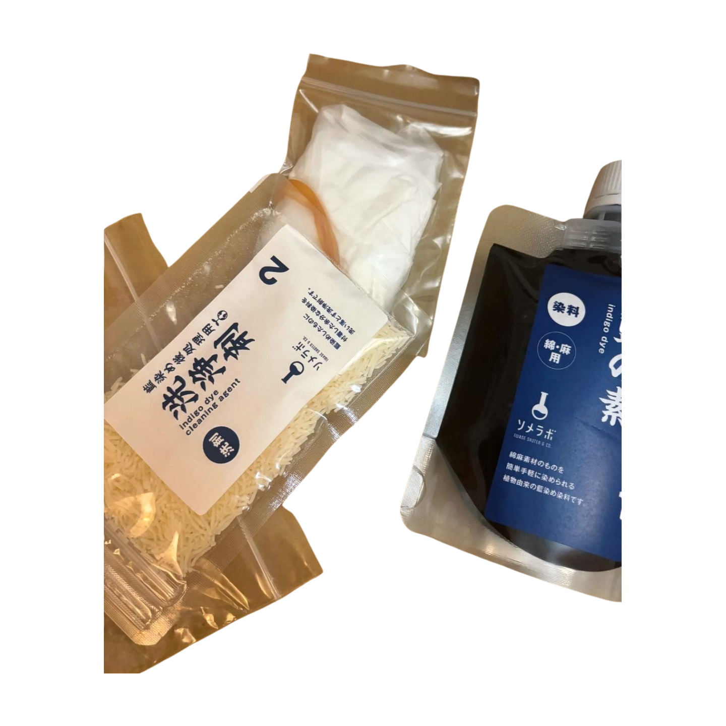 - Dye activation agent: Powder to mix with the indigo dye