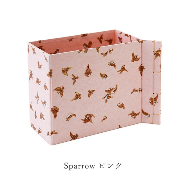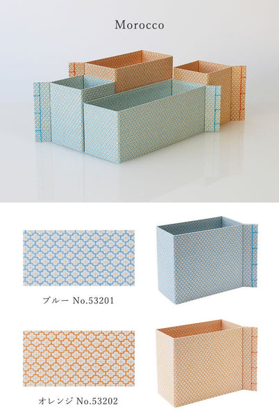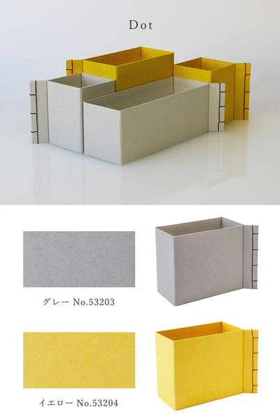 Taji Hako is a new style storage box, born from Japanese-style bookbinding technology. You can easily close with one touch and carry it flat.