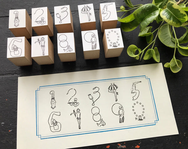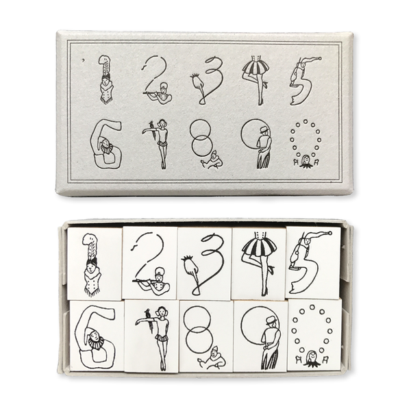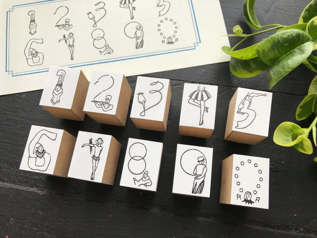 Rakui Hana is a designer who makes rubber stamps and adhesive stamps for papercraft. This Circus Troupe set makes the prettiest array of individual number stamps from circus performers.