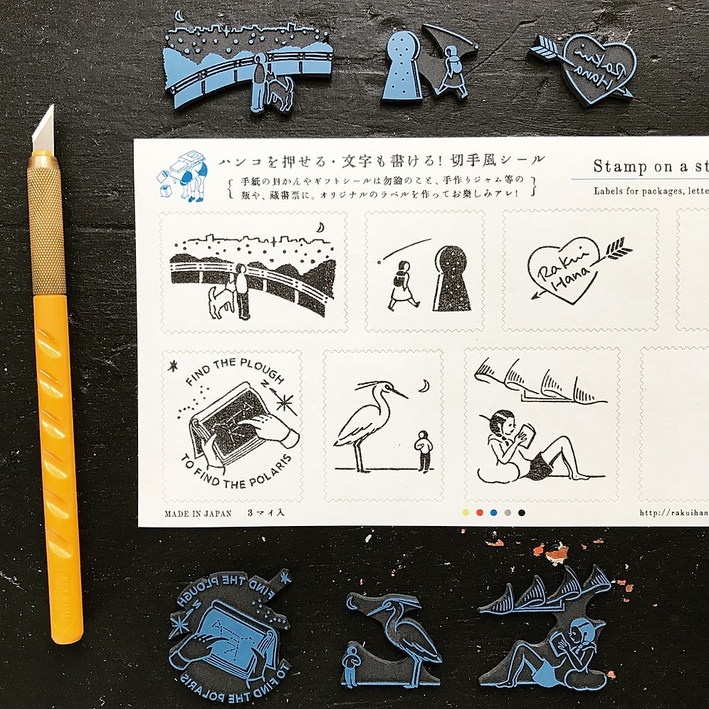 Rakui Hana is a designer of rubber and adhesive stamps.