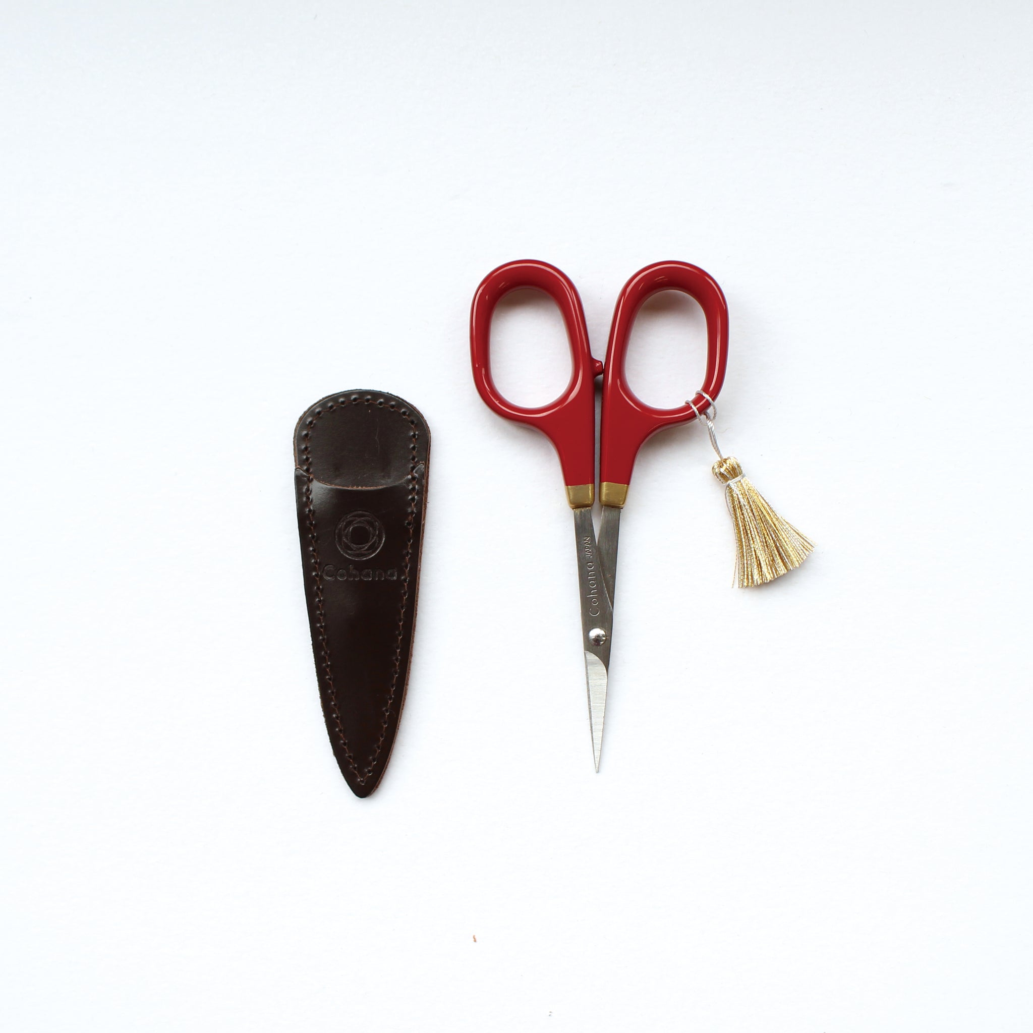Cohana Small Scissors with lacquer handles + gold trim (Shunuri-painting / Red)