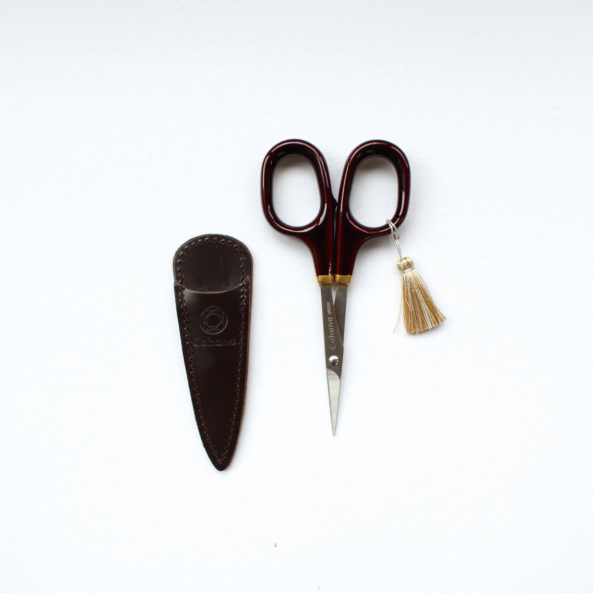 Cohana Small Scissors with lacquer handles + gold trim (Tamenuri-painting / Brown)