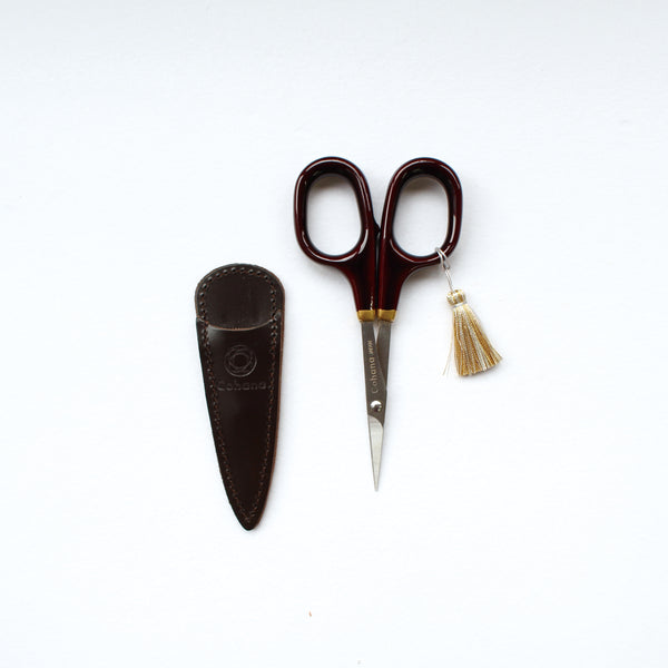 The Oxblood brown scissors are made in Seki, Japan's leading cutlery town. From tiny scissors to large knives Hasegawa's craftsmen adjust the slicing of the blades for each pair one by one, resulting in a sharp cut. The blade tip is thin, finely filed on the tip to help the scissors slice into place. It's is easy to use for detailed work and is recommended for stitching craft and handicraft.*