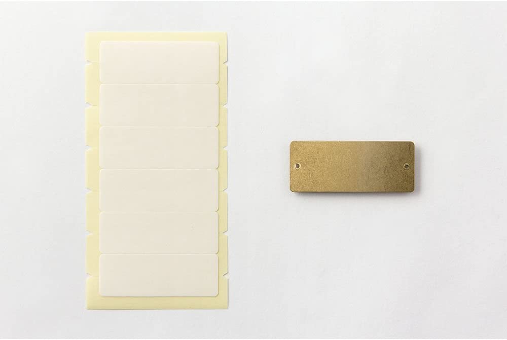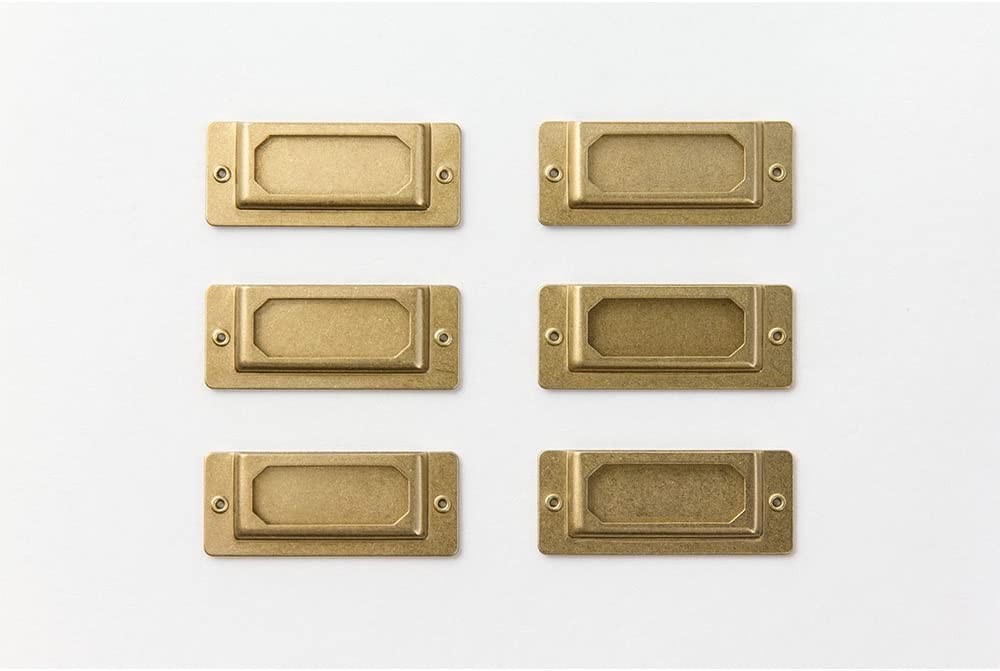来自旅行者的公司,这些是黄铜标签板,可以拧到抽屉或纸板纸分类托盘或董事会,木材或皮革中的硬界专辑。纸标签插入到该部件中以命名内容。